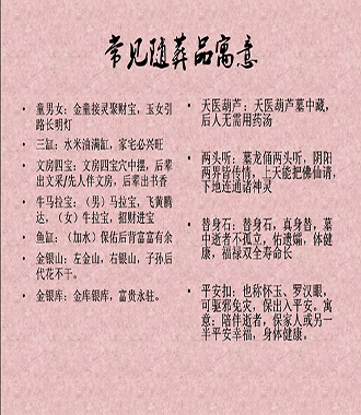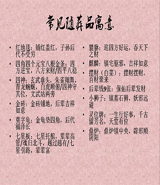 安葬時墓中擺放的必要物品: